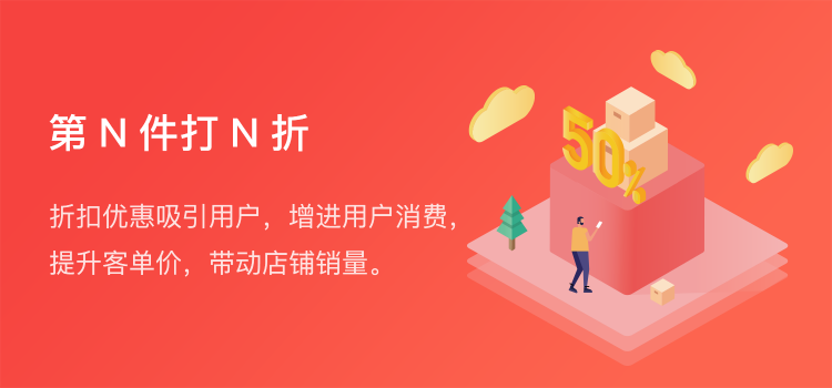 第N件打N折可设置第2件半价、买一赠一、自定义优惠三种优惠方式,满足更多个性化需求;