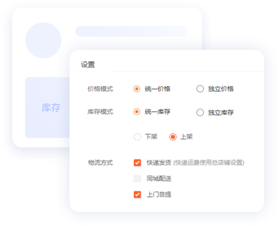 总店铺可选择是否对门店开启独立价格/库存的设置权限; 若开启,门店的运营者可设置商品的独立价格/库存;门店商品售卖模式和业务端的一致。
