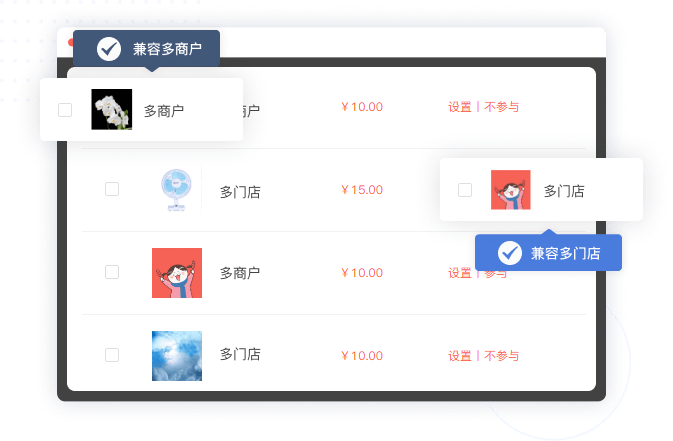 可在代理小店体系下配置各商品的代理状态和代理价格,店长从主商城中获取可代理的商品。