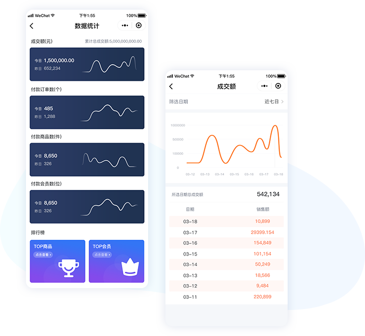 实时查询商品销量排行榜、会员销量排行榜,主动制定运营策略